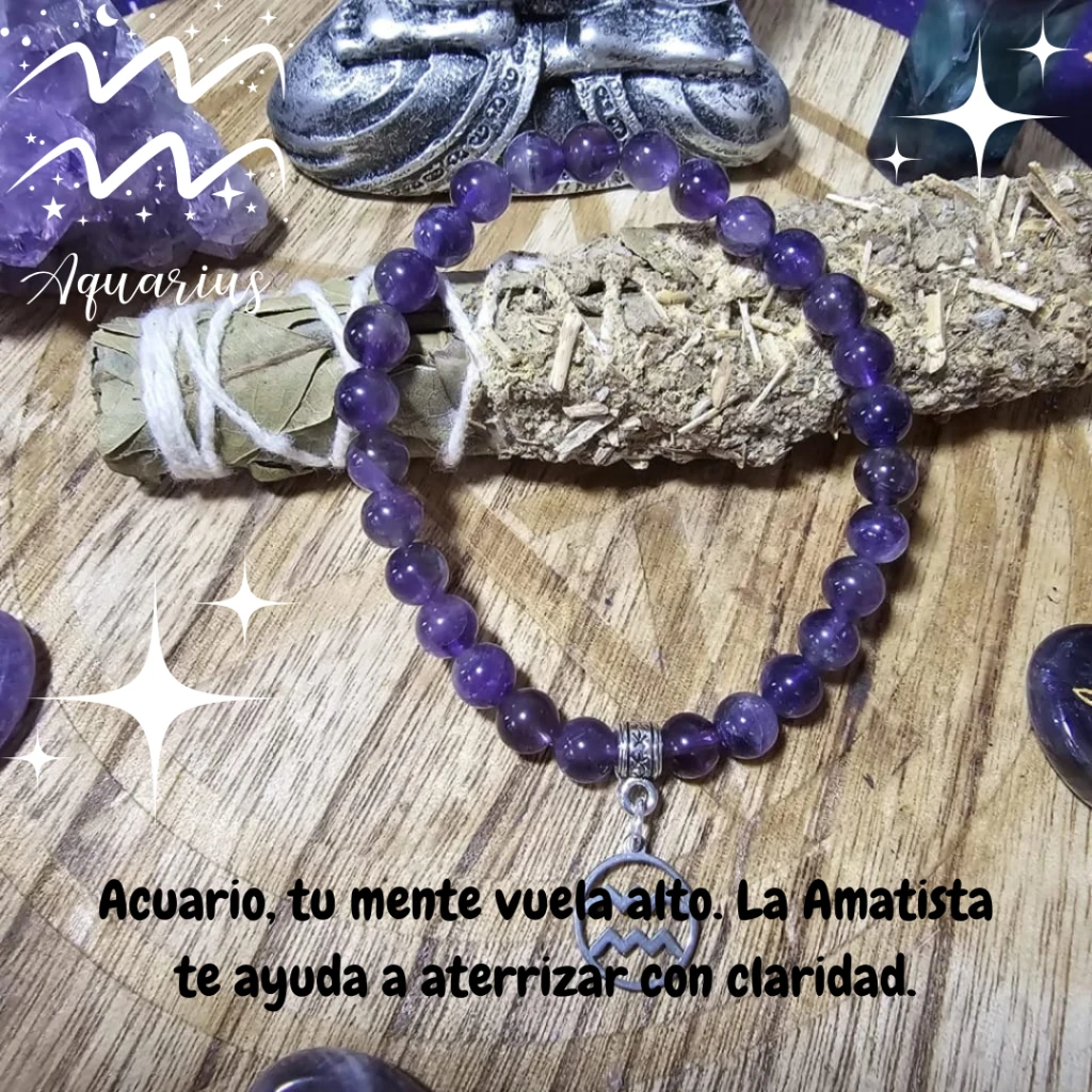 El Amatista es la piedra ideal para Acuario, un signo de aire conocido por su originalidad, pensamiento progresista y su fuerte enfoque en causas que benefician a la humanidad.