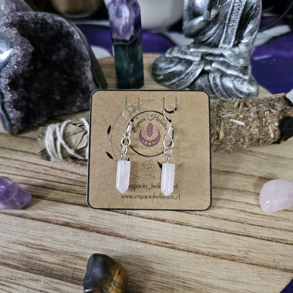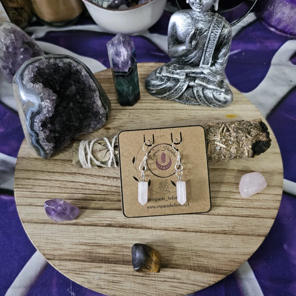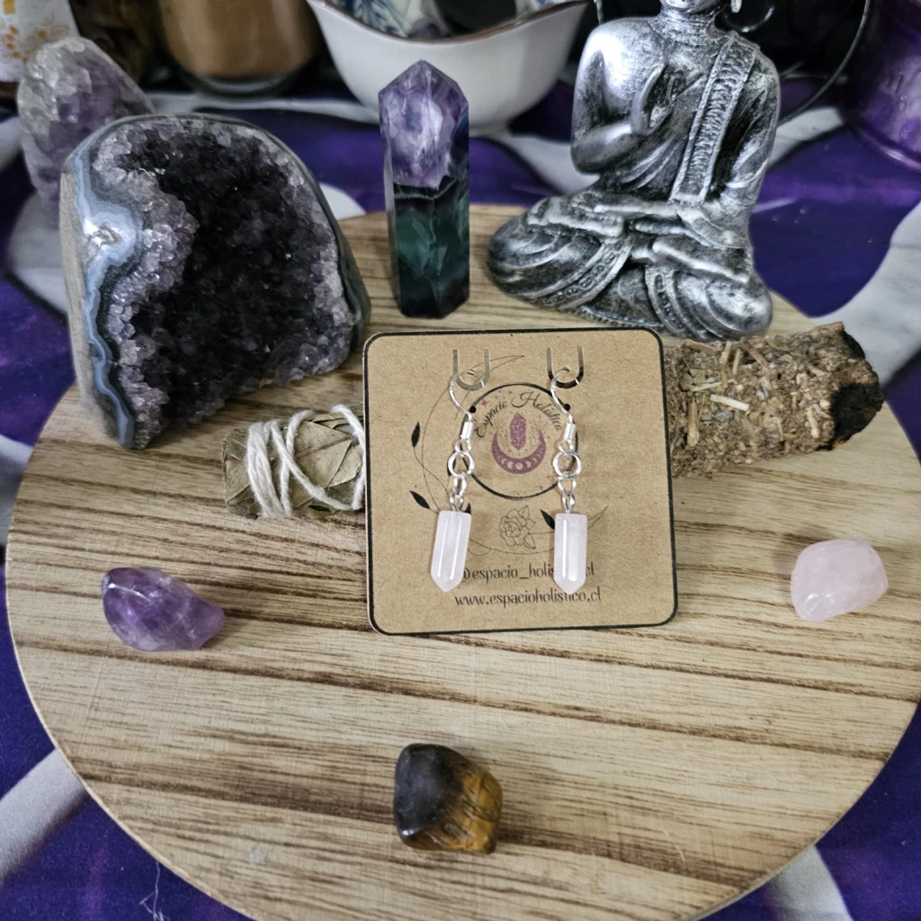 Cada par de aros incluye un ritual de protección y activación energética, realizado cuidadosamente para potenciar las propiedades del cuarzo rosa.