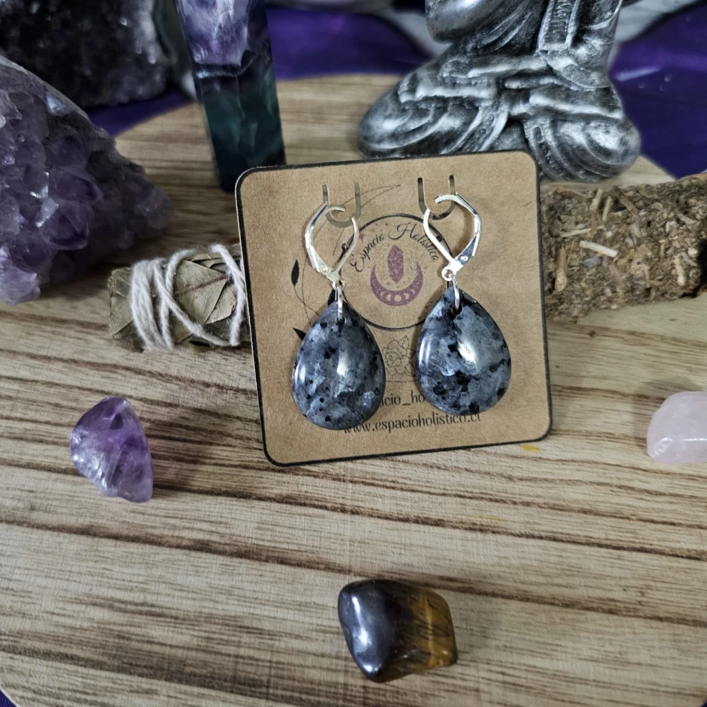 Descubre el poder místico y protector de la Labradorita Negra con estos elegantes aros en forma de lágrima, acompañados de ganchos baño de plata 925. Una joya única para quienes buscan un equilibrio entre estilo y espiritualidad.