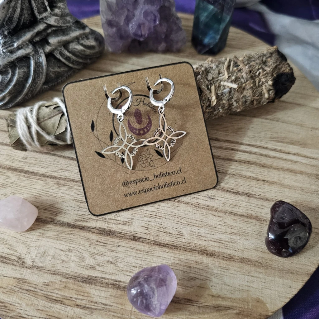 Más que un accesorio, estos aros son un amuleto sagrado de protección y equilibrio. El nudo de bruja es un poderoso símbolo que representa la unión de los cuatro elementos, la fuerza interior y la protección contra toda energía negativa.