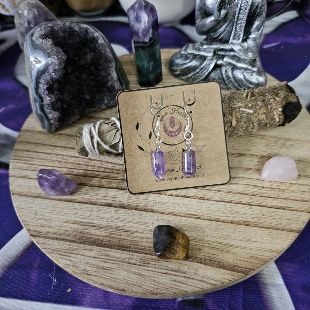 Cada par de aros incluye un ritual personalizado de protección y activación energética, realizado cuidadosamente para potenciar las propiedades de la amatista.