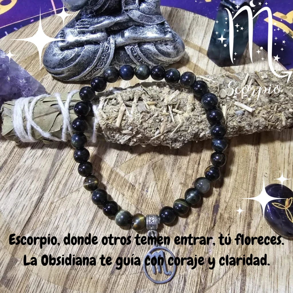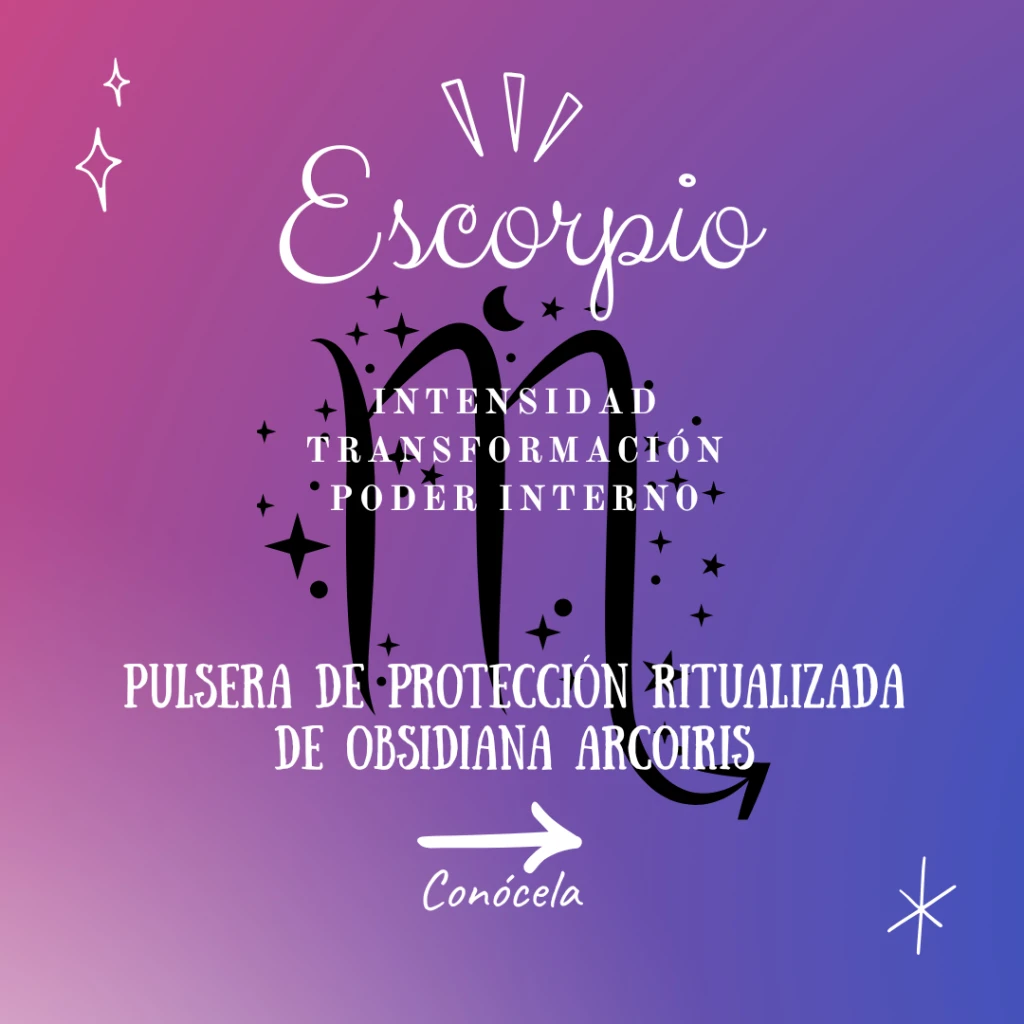 Este cristal conecta con la capacidad natural de Escorpio para enfrentar las sombras internas y renacer más fuerte. La obsidiana arcoíris brinda protección energética, ayudando a liberar emociones bloqueadas y patrones negativos. Para un signo que vive intensamente sus emociones y relaciones, esta piedra actúa como un escudo protector, manteniendo su energía,limpia y equilibrada.