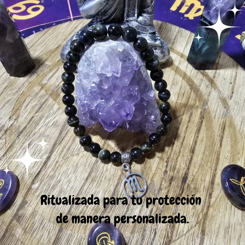 Cada pulsera es consagrada de manera personalizada mediante un ritual único, diseñado para activar y potenciar las cualidades del amuleto con su futuro dueño, brindando una herramienta poderosa de crecimiento personal y protección energética.