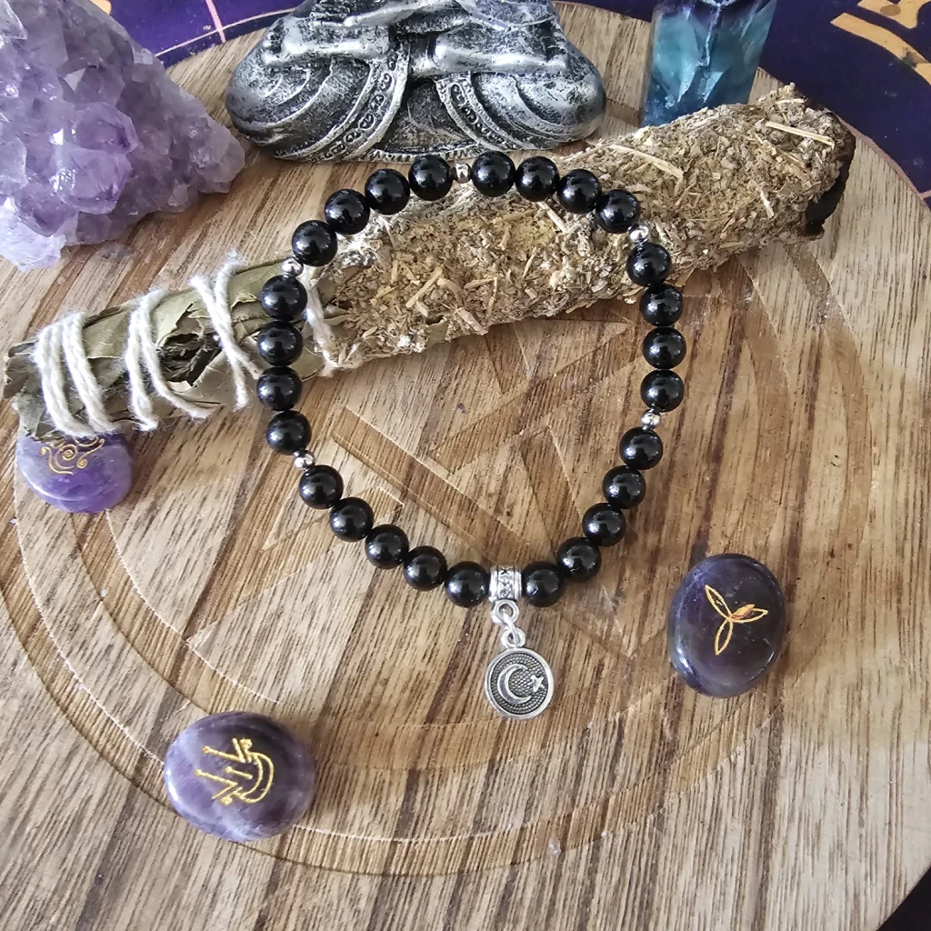 Cada pulsera es ritualizada de manera personalizada, alineando su energía con tu vibración y necesidades personales, convirtiéndose en un amuleto único y significativo.